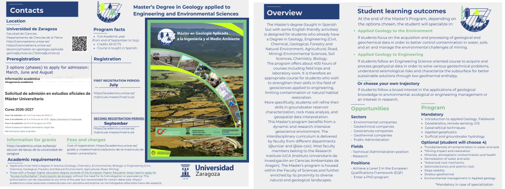 MÁSTER EN GEOLOGÍA APLICADA A LA INGENIERÍA Y EL MEDIO AMBIENTE